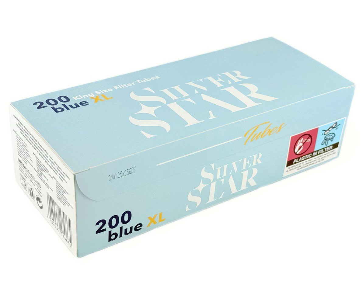 Гільзи для набивання сигарет SILVER STAR BLUE X-LONG (200 шт) з білим довгим фільтром – ідеальний вибір для комфортного та приємного куріння. Довгий фільтр забезпечує чистий смак і підходить тим, хто віддає перевагу гільзам із подовженим фільтром. За якістю вони майже не поступаються відомим світовим брендам та не розклеюються навіть після кількох затяжок. Оптимальне поєднання високої якості та доступної ціни.